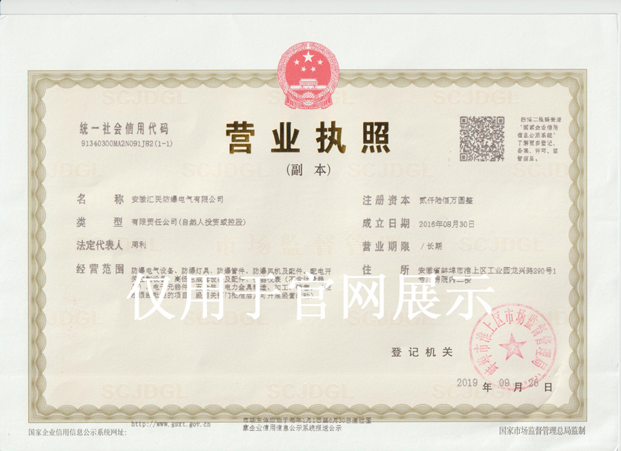安徽匯民防爆電氣有限公司企業(yè)名片