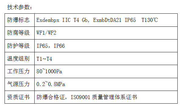 1.采用不銹鋼或者鋼板,機械強度高,氣密性好,通入保護性氣體作為介質形成正壓腔內的微正壓,隔離外部的可燃性氣體粉塵。